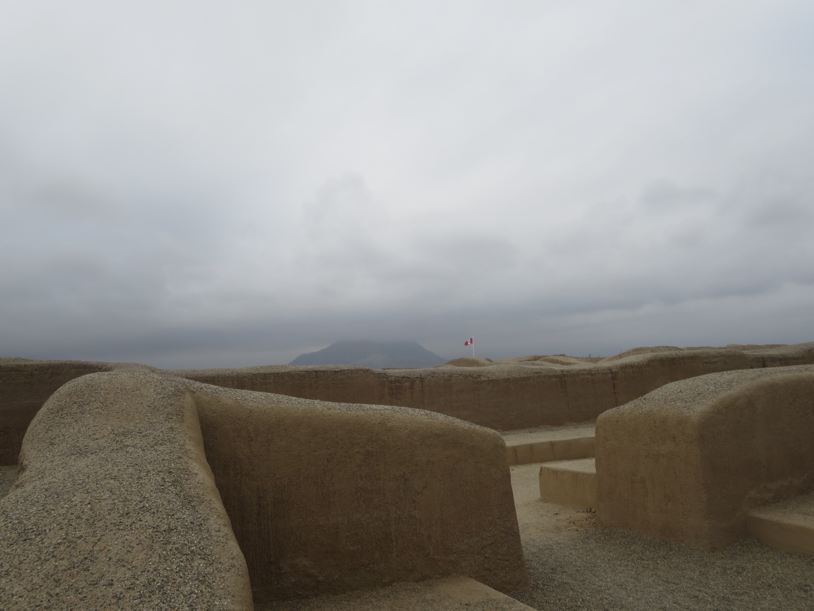 Chan Chan, the Chimu cultural capital, was once the largest city in the Americas. It’s located to the north of modern Trujillo. The adobe walls and structures that remain are so extensive, it’s easy to get lost and forget where you are in relation to the world outside. On this day, the thick coastal clouds rolled in as our tour group approached, covering us and masking our direction.
