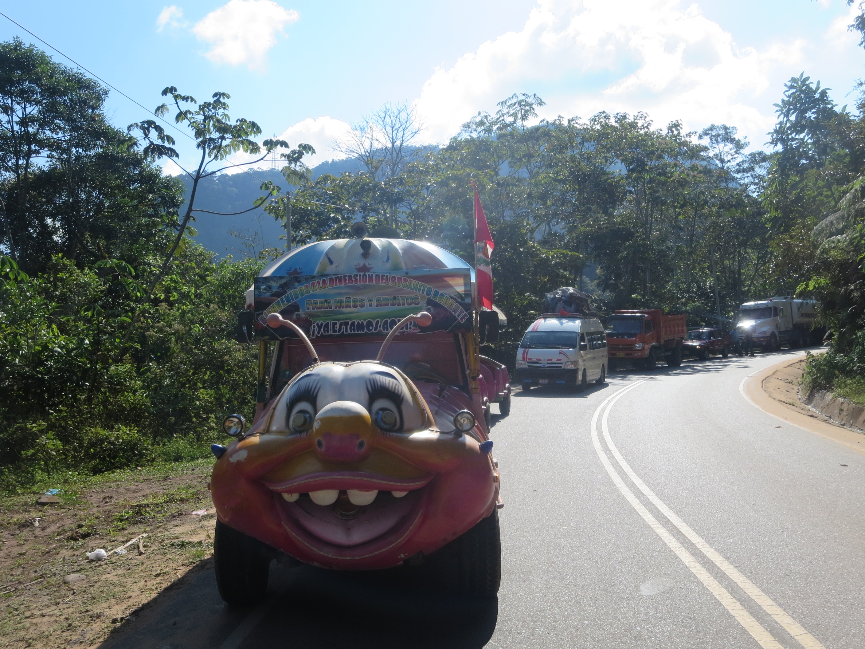 Arriving in the port of Yurimaguas after three days on a dreamy lancha boat filled with bored men, I am ready to bathe in a cool pool in the deep forest. First, however, it’s two or three hours in a crowded combi across the Cordillera Escalara, the last mountain range before the rivers drop into the flat low jungle.In its heights we are stopped at a roadblock landslide repair, a typical jungle mountain scene, and there is a chute of falling water on the hillside. The driver gets out and bathes and drinks from the chute and urges me to do the same. It’s fresh and cool and doesn’t make me sick, but what beautiful hills to get lost in.