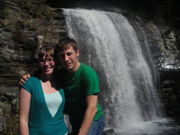 Looking Glass, popular because of its height and majesty yet close roadside access, is where I met Jessica and Brian (pictured at LGF). Their wedding is in July in a town nearby, so they are scouting for the perfect waterfall location, starting here.