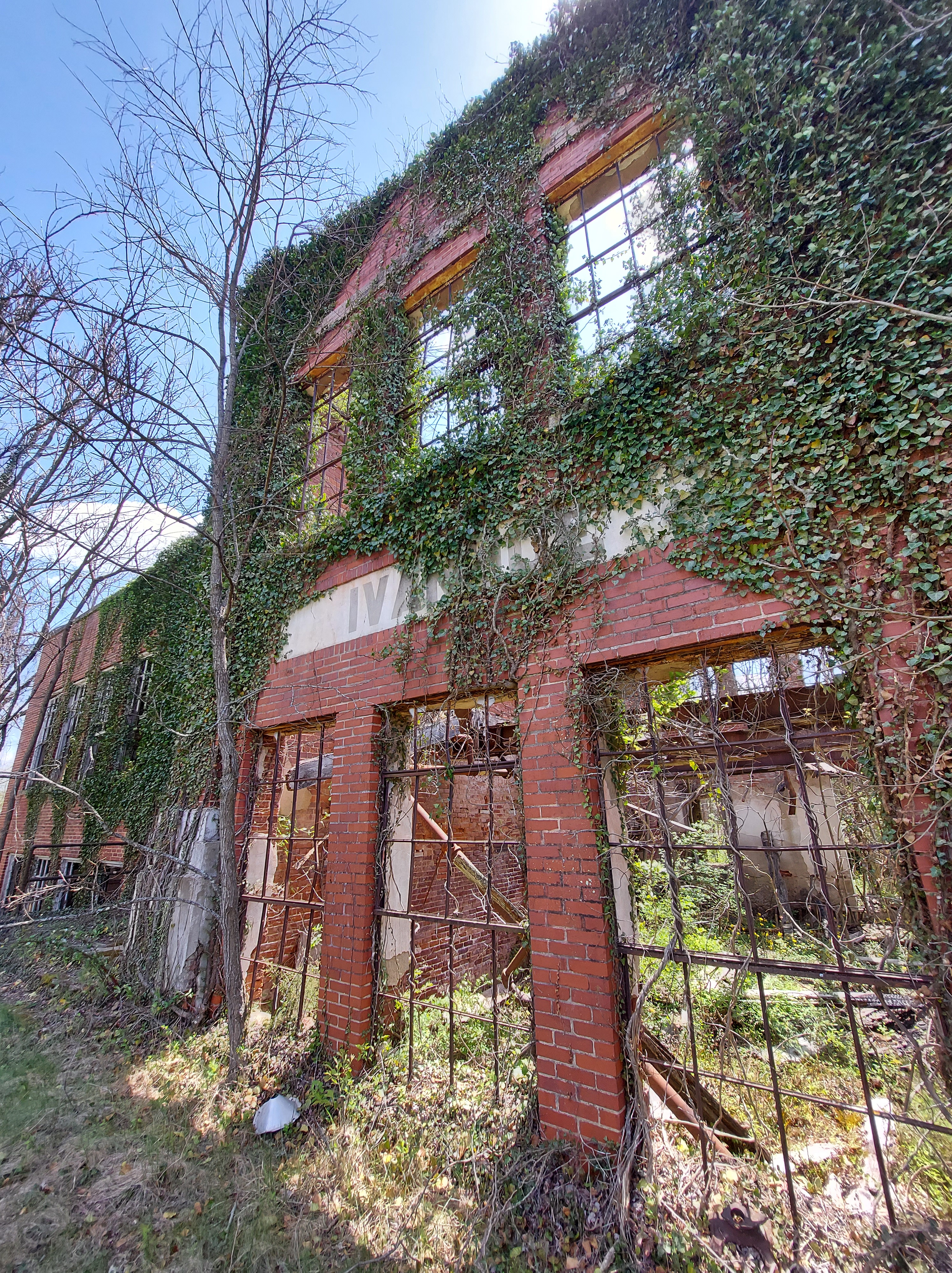 Ivanhoe high school burned down in the 1950s, and was never rebuilt. It is not fenced and one can just walk up and enter the building. Be careful! Steps are missing and broken radiators and metal beams cross the entrances. It is not safe to enter, but a wonder to witness from the edge. Wildflowers bloom inside the old brick walls and ivy covers the outside. My girlfriend said this is one of the most amazing places she’s seen.
