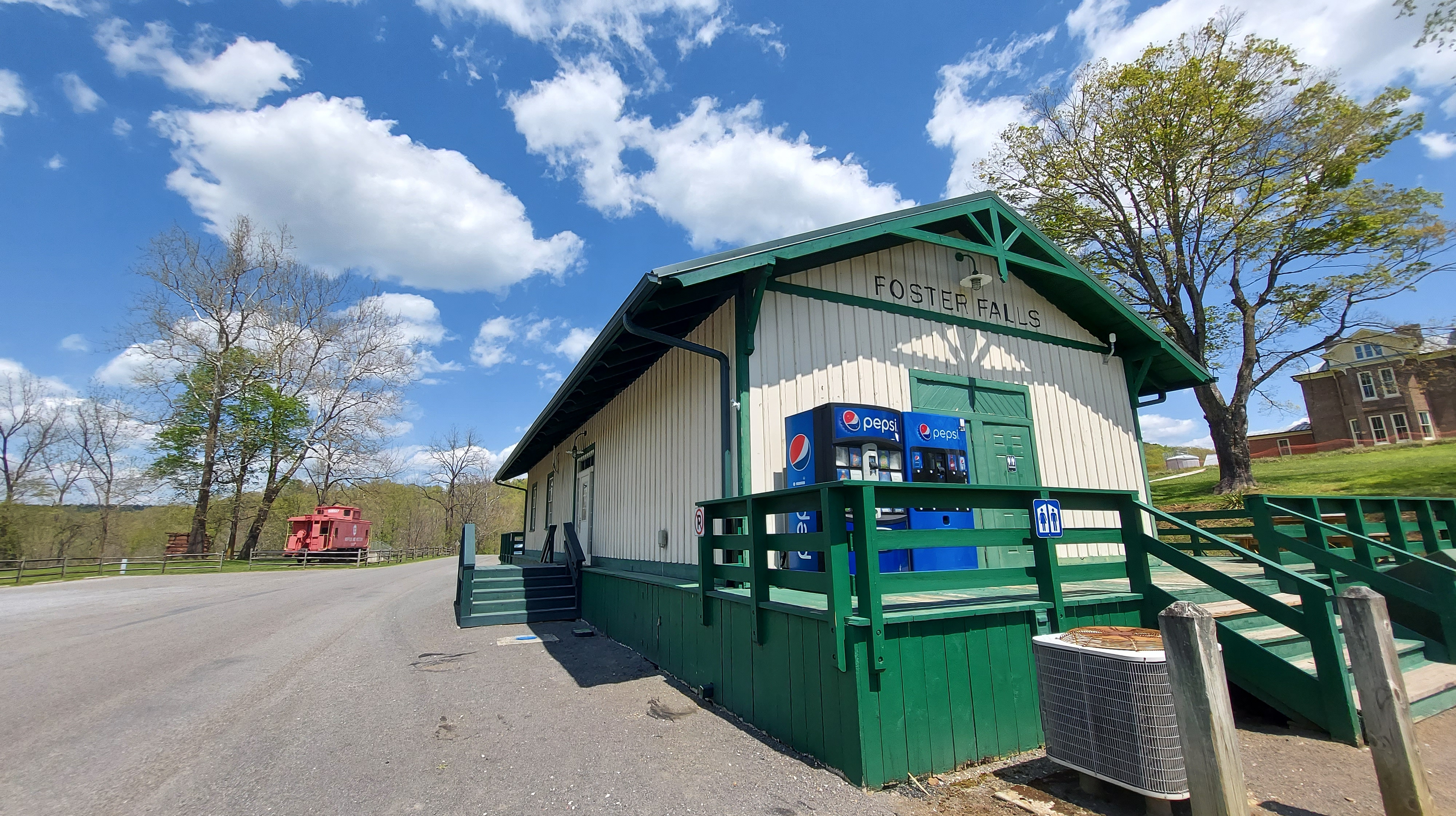 We visited two town sites along the river in the Lead Mines district, Ivanhoe and Foster Falls. The rail right-of-way is now a trail and forms the spine of linear New River Trail State Park in Virginia. Former depot locations are parking areas and amenity stations, including these towns and for many others. This trail is becoming popular for bicyclists, and is also good for flat hikes, for kids or those in wheelchairs.