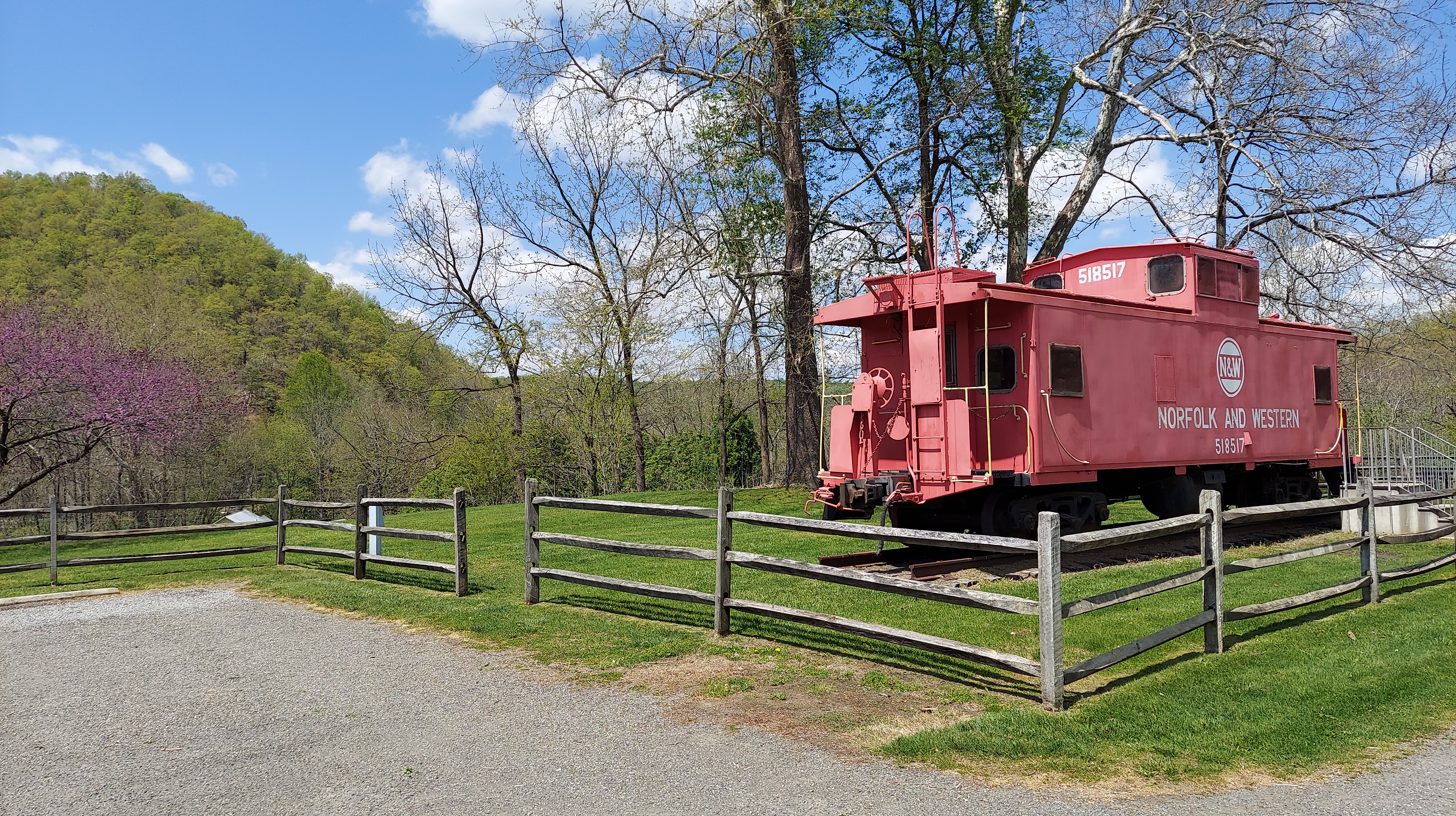 The New River, understood to be the oldest river in North America, flows northward and cuts through several mountain chains as it flows toward the Ohio. Norfolk Southern rail line followed the New river in its valley, along grassy rolling meadows and beside limestone cliffs. Minerals from coal/carbon to lead and zinc were mined in these areas and transported to cities or used to make ammunition for use in battle, by this railway, through the 1800s. Small company towns flourished along the river and rail line, then faded or depopulated as the mines closed in this area.