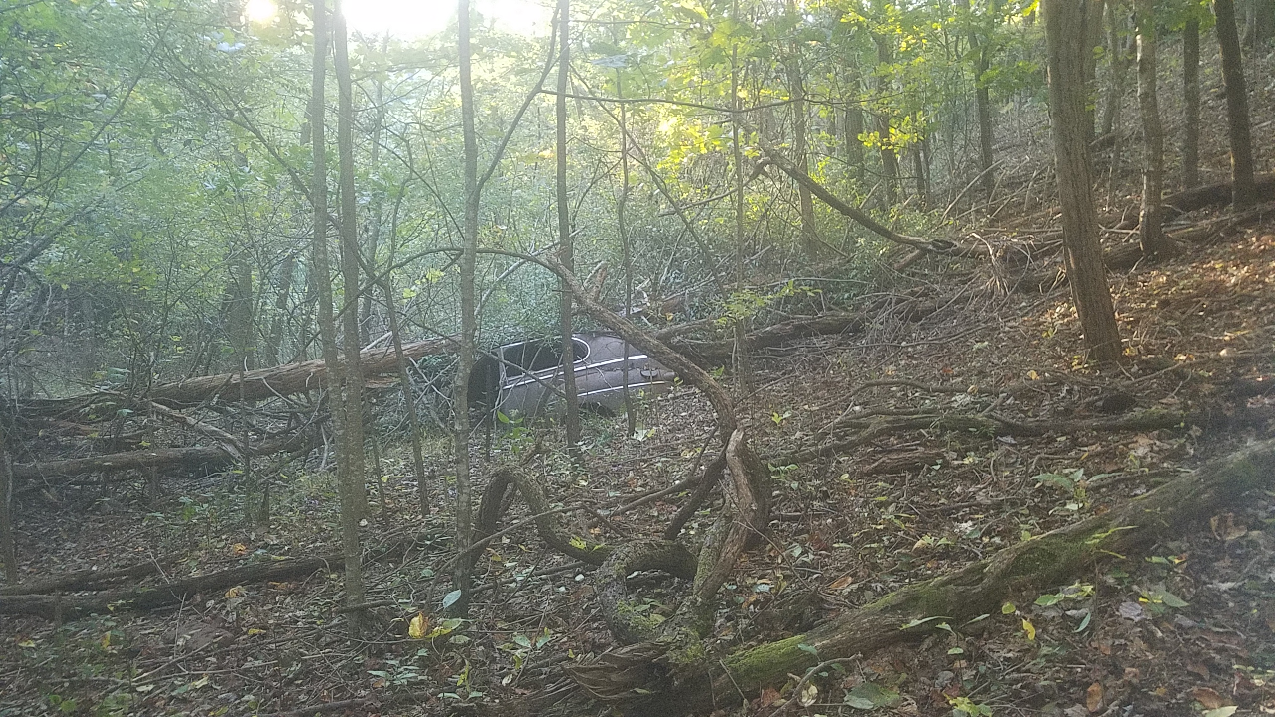 Fancy Gap has been an important passage point across the Blue Ridge escarpment throughout history. Its gap is just deep enough, flat enough for a ‘right Fancy road‘ as Ira Coltrane said in the 1830’s, and so came the Turnpike, a popular stagecoach route between the South and the Great Lakes. But it was a difficult climb for the horses, who had to stop and rest at a spot midway up the mountain. Early automobiles also had issues on the gravel road and so a tavern and motel were built at that midway spot where creeks crossed. Remnants of this tavern still stand just south of where our part of the land touches the highway, and I do remember passing this as a child. Eventually, this road became part of US highway 52 and it was the main road until 1977, when Interstate 77 was built over the gap, just to the west at a slightly gentler angle. (Source: http://Galaxscrapbook.com )