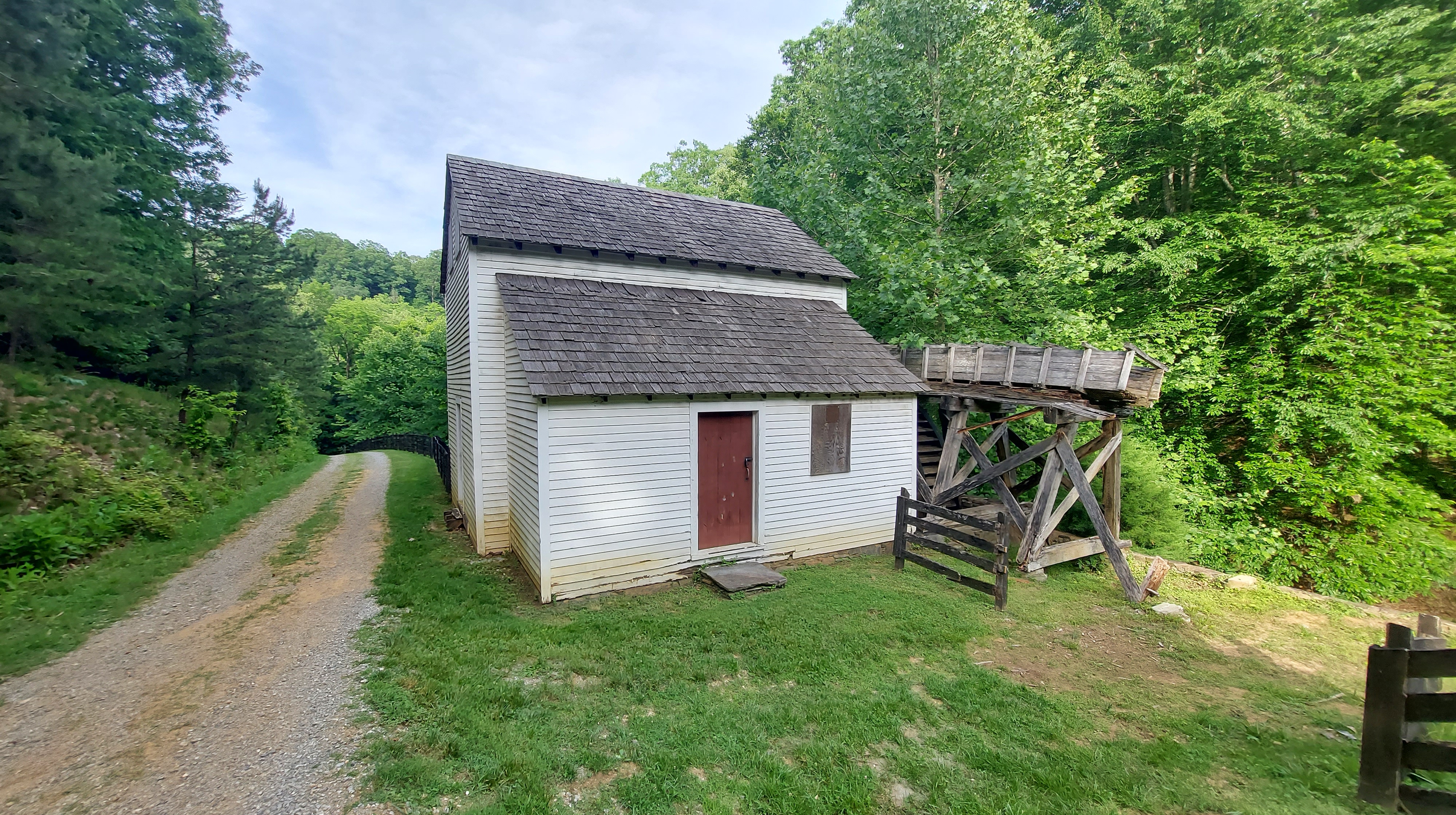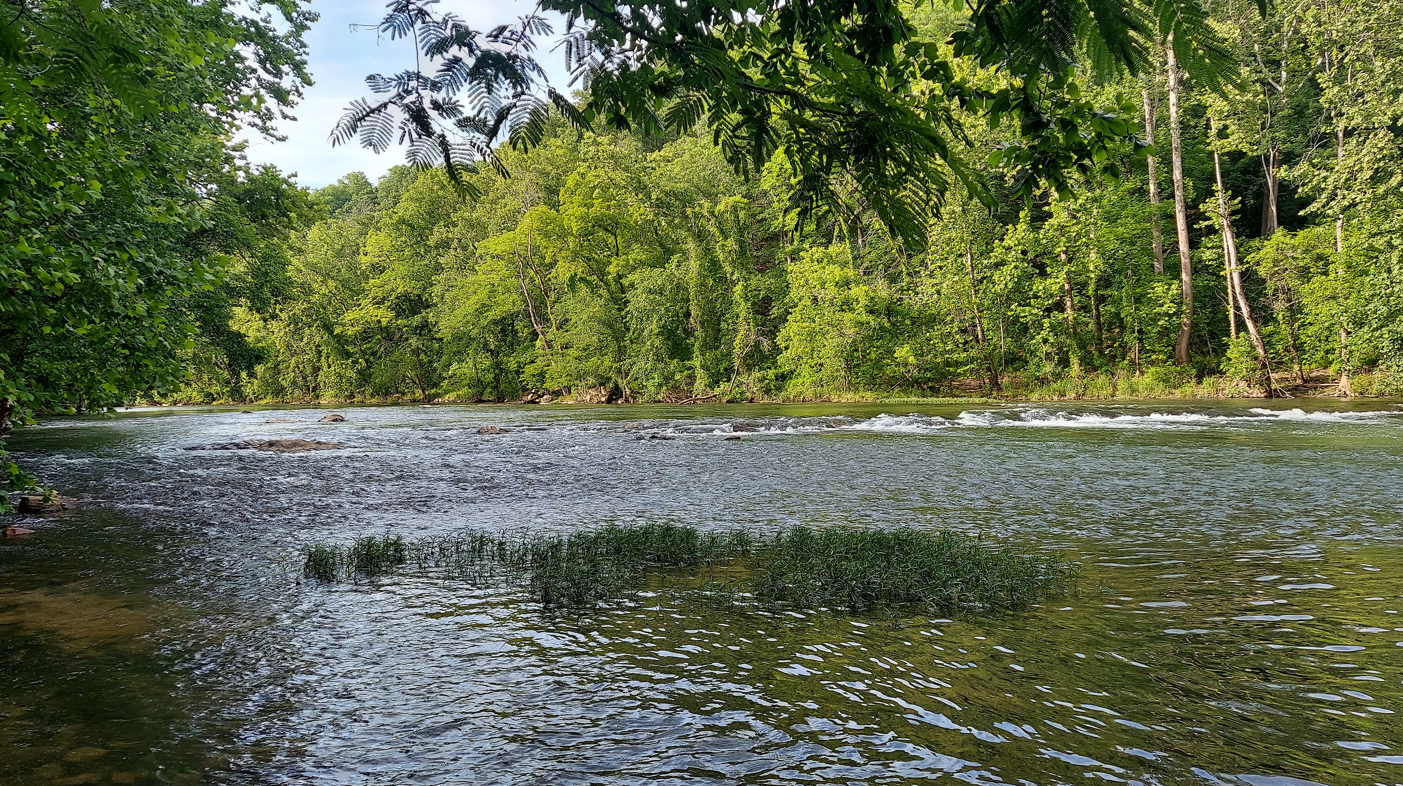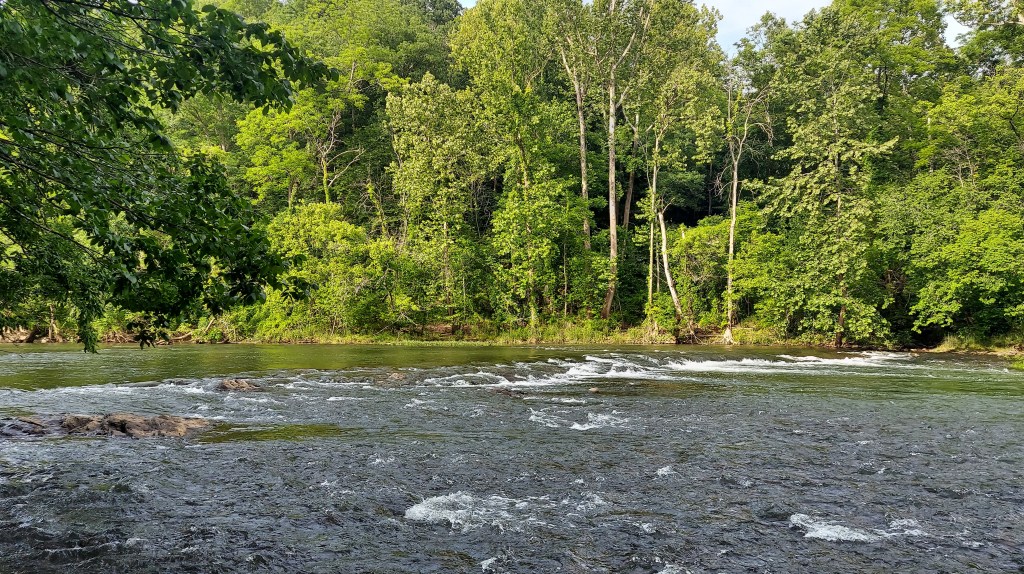 A few miles north on the Parkway is Explore Park, a Roanoke County park bordering the Roanoke River as it exits the valley into a shallow gorge. The river is wider and faster here, with many campsites, some yurts and canvas tents, an educational area for youths, a few historical buildings, and a brewpub. I hike around, along the river for a time and then leave, driving onward.