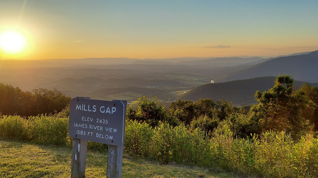 Where next? Sunday morning, I’m up at sunrise and out, to Roanoke, for the last, longest day of work at the festival. It’s exhausting, but worth it for the “roanoke” (the money and the scenic city) and I know I’ll come back. Only at the hour before sundown, after the event and on the way back toward home in Norfolk, is there a chance for a side trip on the Parkway to find the purple flowers. Peaks of Otter, where three mountains on a water divide form a high valley, is the place.