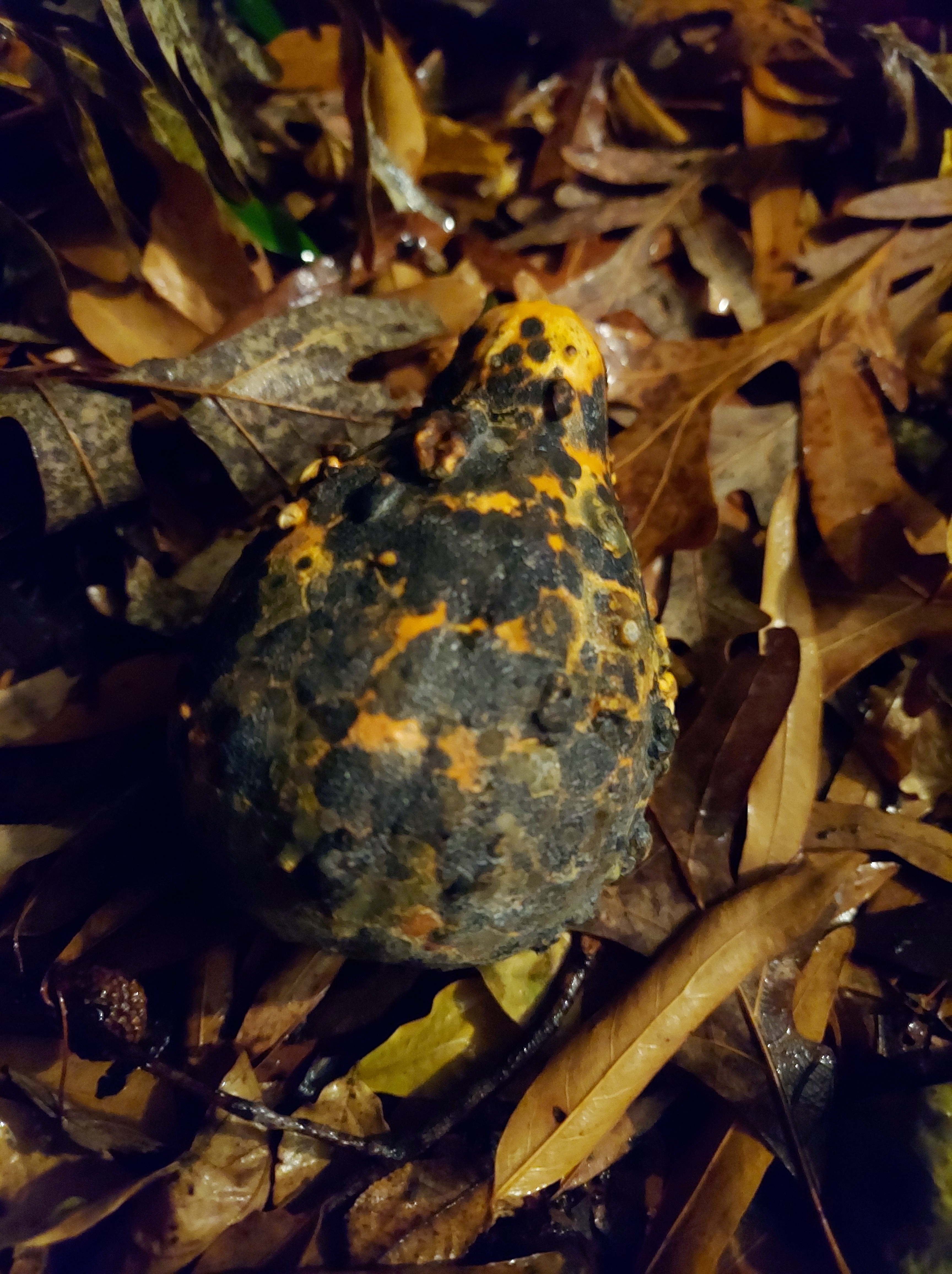 Late in November, black spots begin to climb her bright orange shell. Her time from the vine a fading memory, she comforts me in response to a local tragedy. The forest faeries explore just a little more, while the weather is mild and we can commune in the wild.