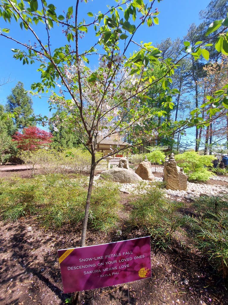 In the park, there are a number of haiku about sakura written by different people, posted on signs. I enjoy them, particularly the two in these photos, and I believe 10-year old Arlette is local to Virginia Beach.