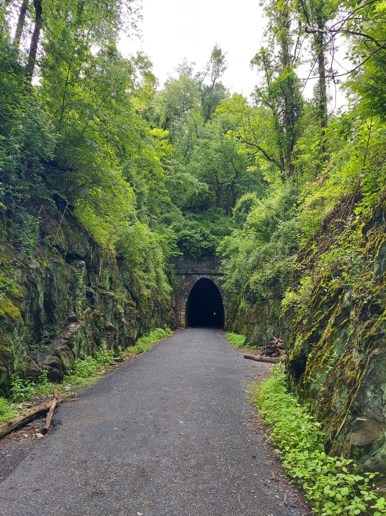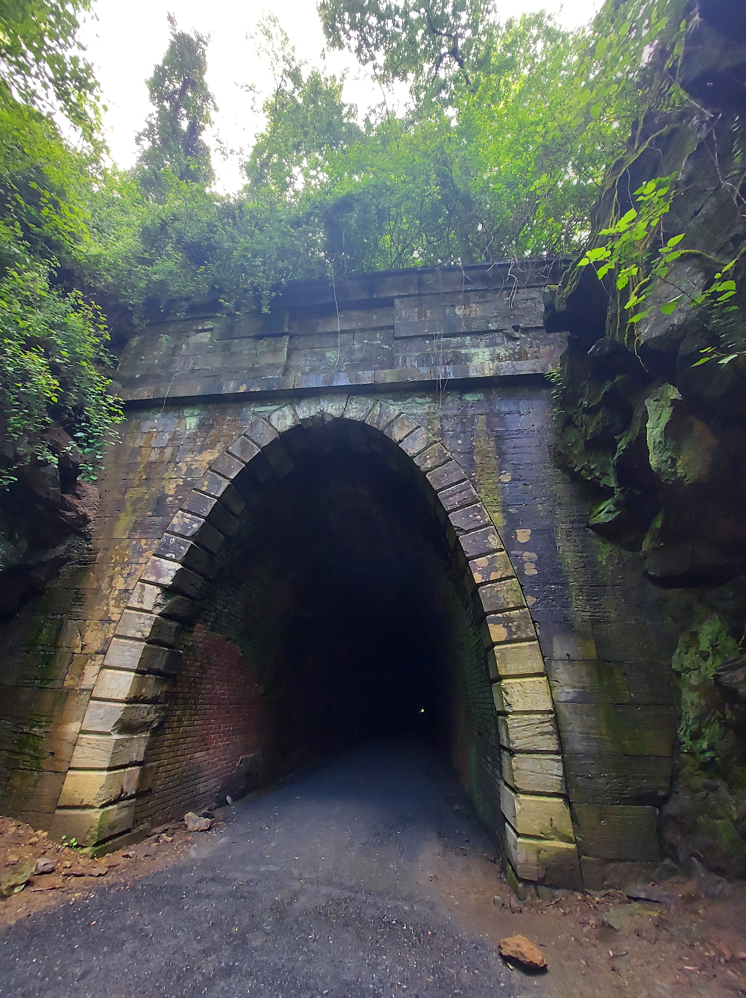 Notable is the stone arch at the western portal, which was carved by Irish stone-masons, and the lack of an arch at the eastern end since the portals were constructed separately. GoHikeVirginia and HikingUpward have posts with more information about this tunnel and the trail.