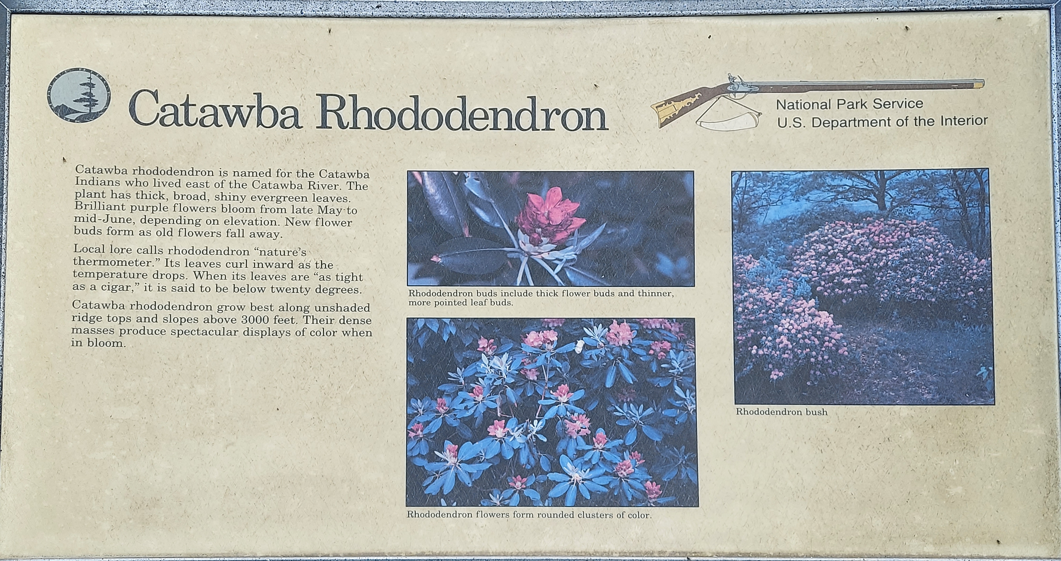 Rhododendron Catawbiense was named by botanist Andre Michaux, as he explored the upper Catawba river valley in the late 1700s. It was near here, around the sources of the Catawba River, where he found the colorful blooms and so named the shrub species for its location. The river was named for the indigenous Catawba people, who lived along it from this area into the Piedmont.