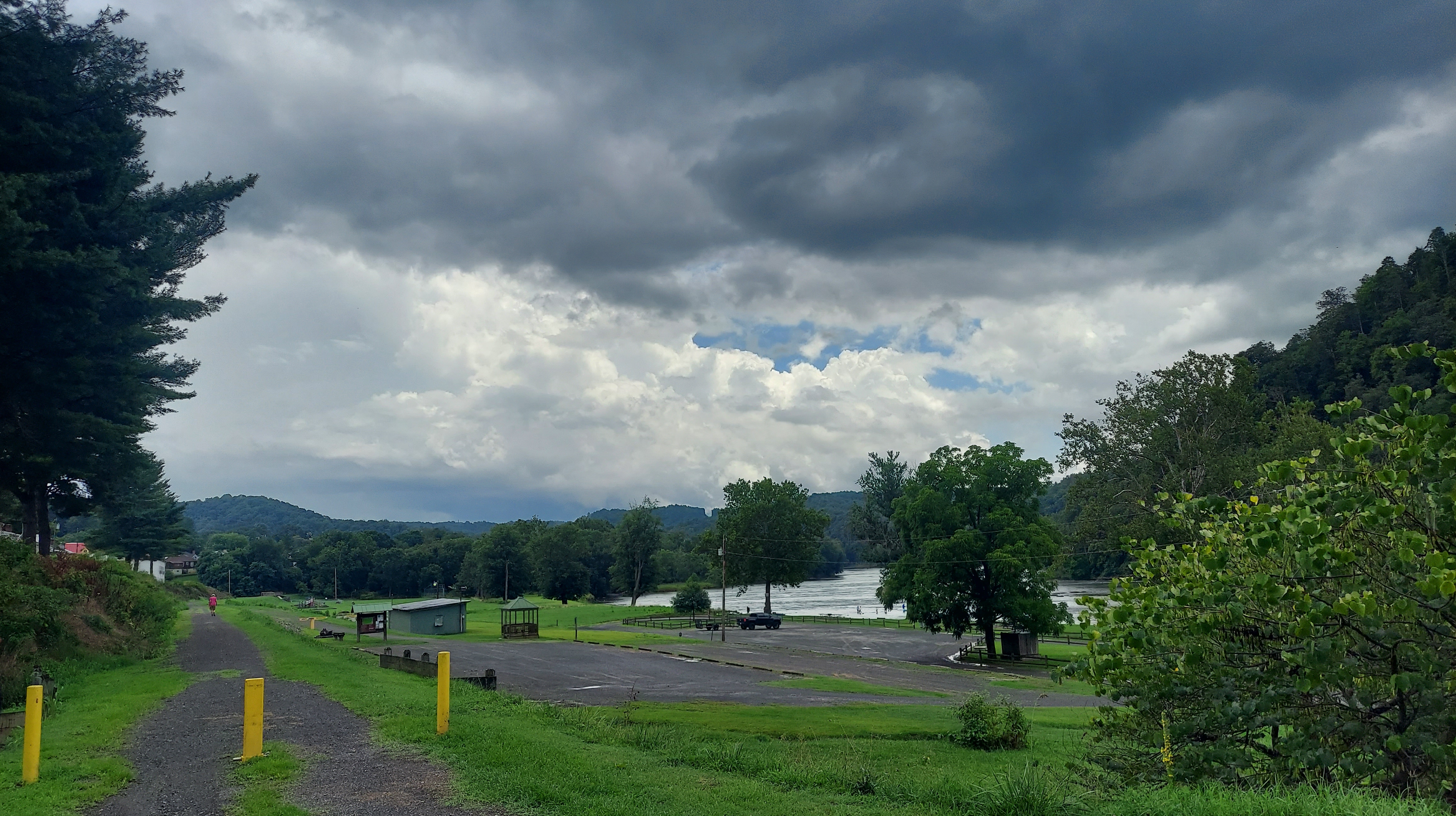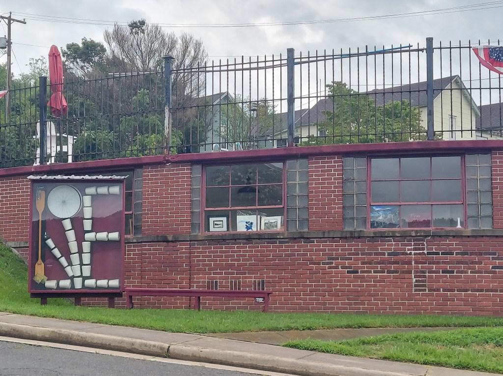 The Galax farmers and artisan markethttps://ariannastravels.com/2022/05/03/new-river-valley-calm-old-mining-towns-and-a-return-to-writing/ runs from 9am-1 pm Saturdays from March through October. There’s also a Thursday market from 3-7 pm. On this day, about 10 vendors are set up here, including the organizers (see above pic with tents); the weather is comfortable and partly sunny. A mix of locals and tourists come and shop, and we are all feeling optimistic. By noon, a dark cloud has moved directly above downtown, and by 12:30, it’s pouring rain. We pack up in a rush and the market is over just before 1, as rain fills the streets. My jewelry is safe, but my clothes are soaked.