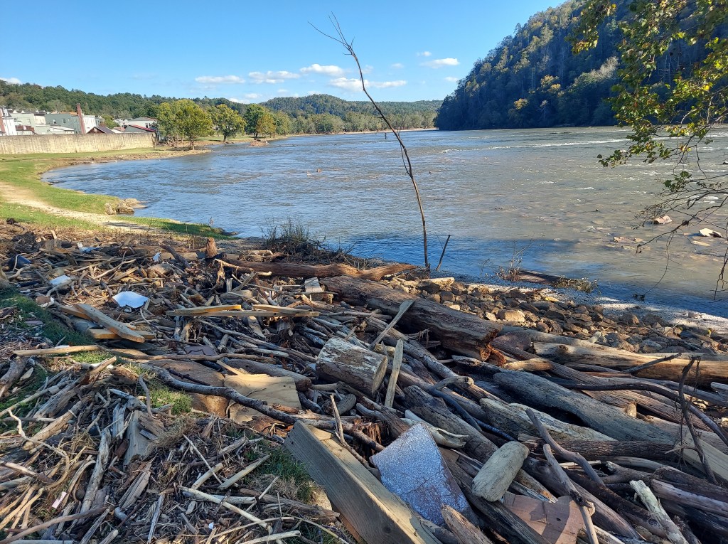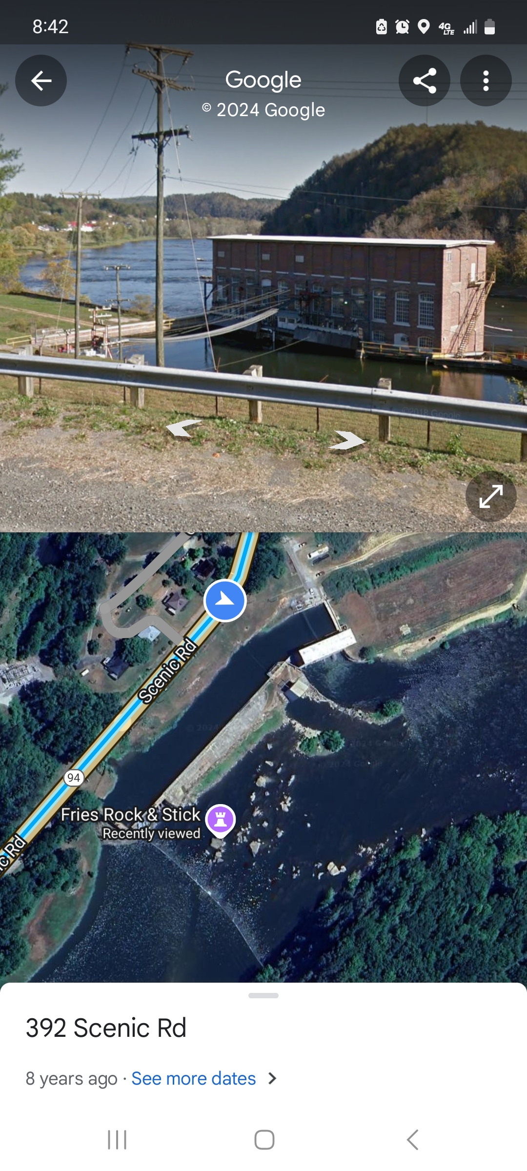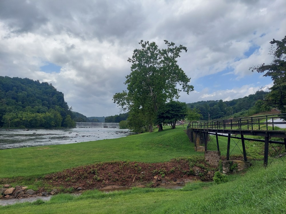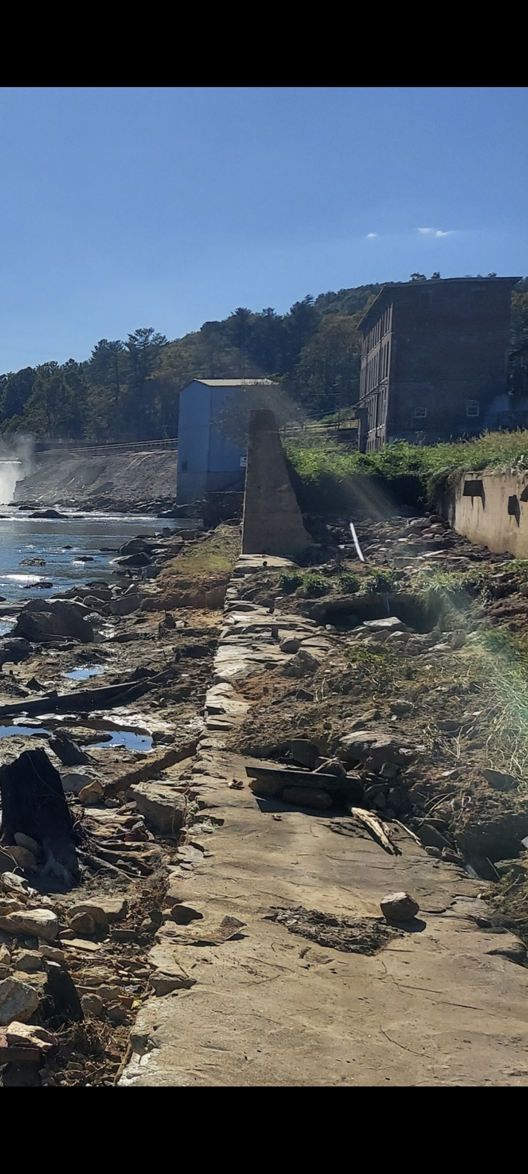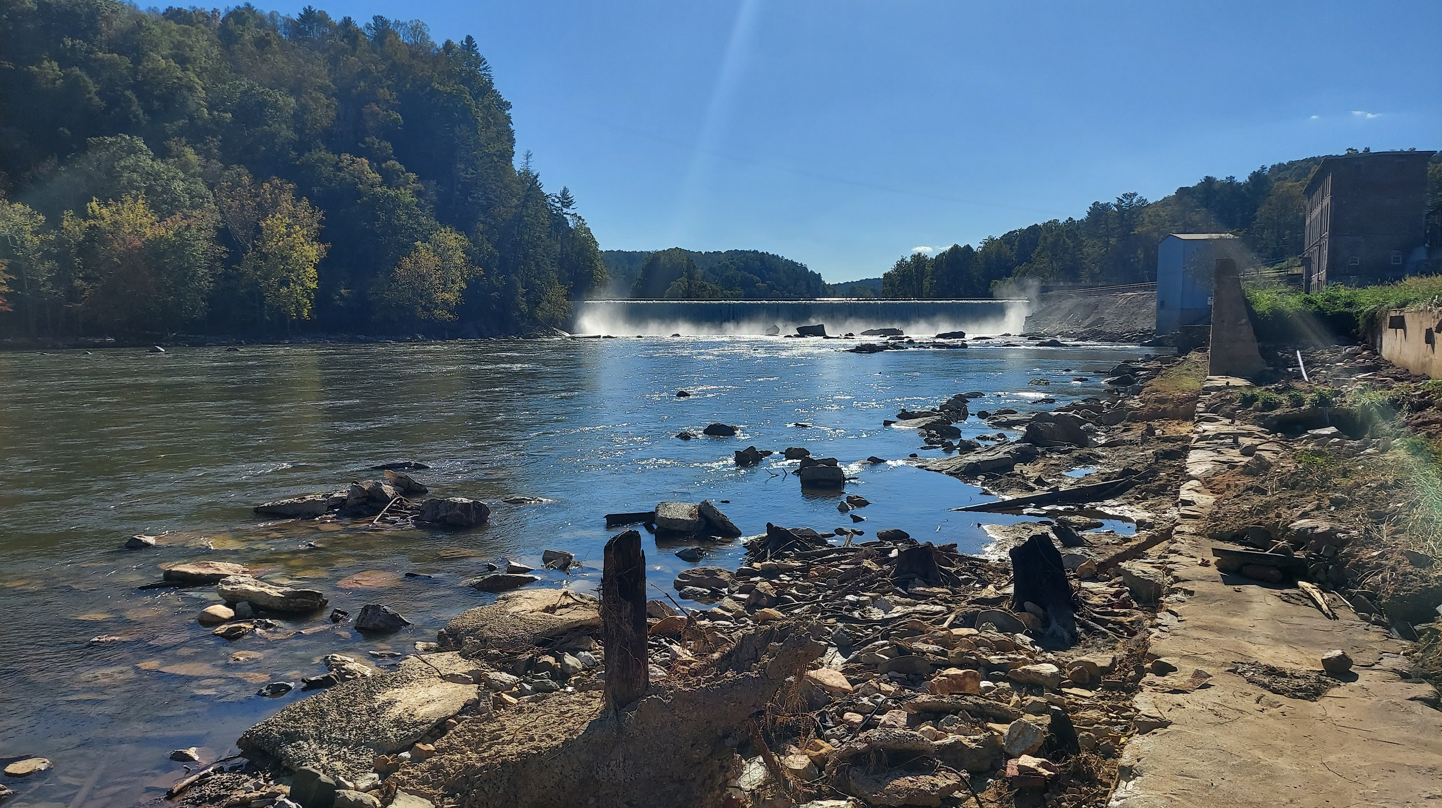 Fries Dam was the first to be built on the New River, 1901-3 for the textile mill that ran the town. 39 feet tall, it was built on a natural fall at a bend in the river. Fields dam, upstream at Mouth of Wilson, was built in 1930 to power a mill there, making it the first dam on the river’s course. Downriver dams include Byllesby, Buck (hydroelectric, both 1912), Claytor Lake (1939, hydroelectric) and then Bluestone in West Virginia (1940s for flood control), which caught much water and debris from upstream following Helene. http://www.virginiaplaces.org/watersheds/new.html