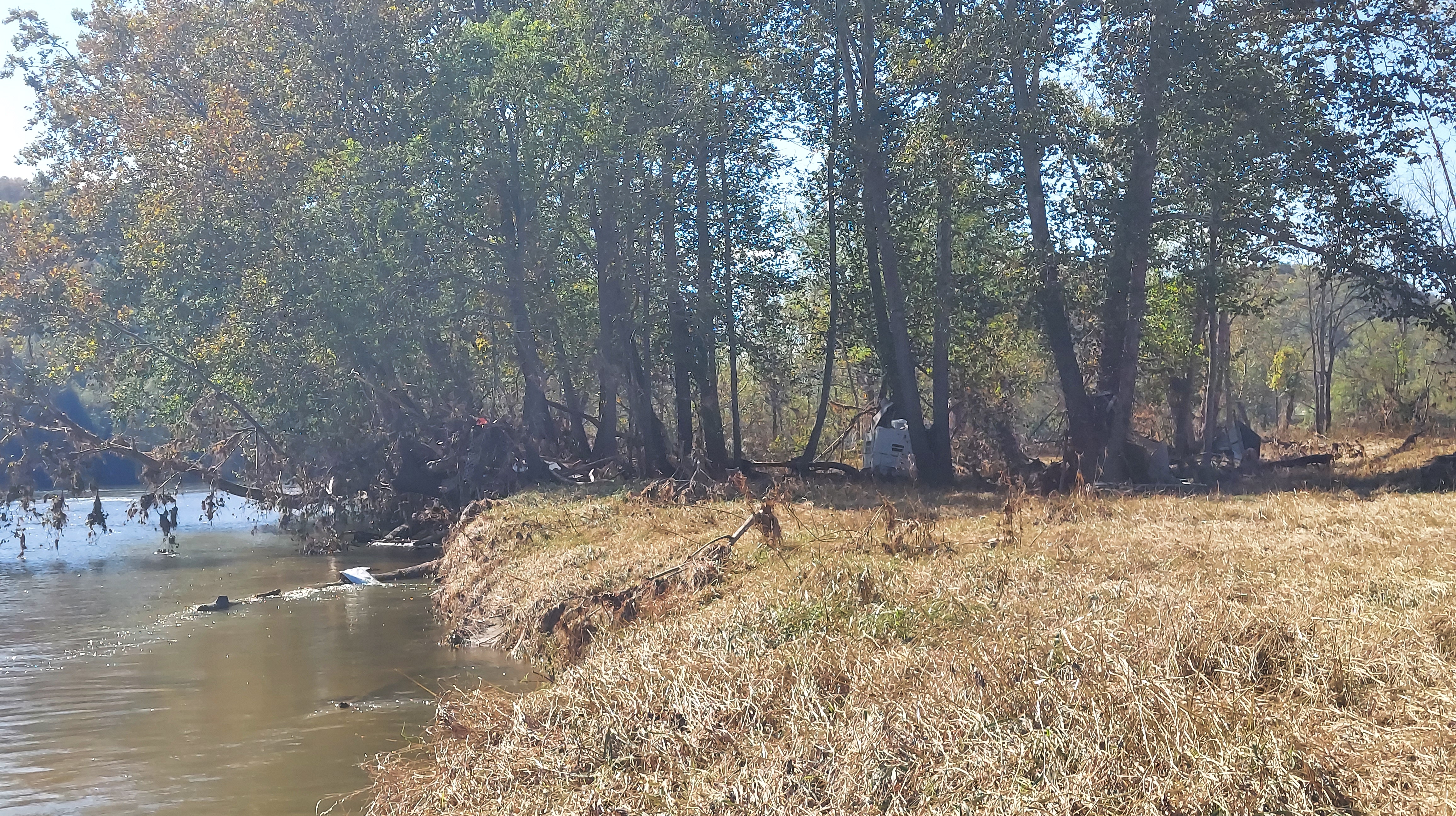 At a boat landing upstream a few miles from Fries, I see another RV in the mud amid the trees. It’s not safe to walk any closer to it due to the soft ground and streams beneath the thick brown grass.