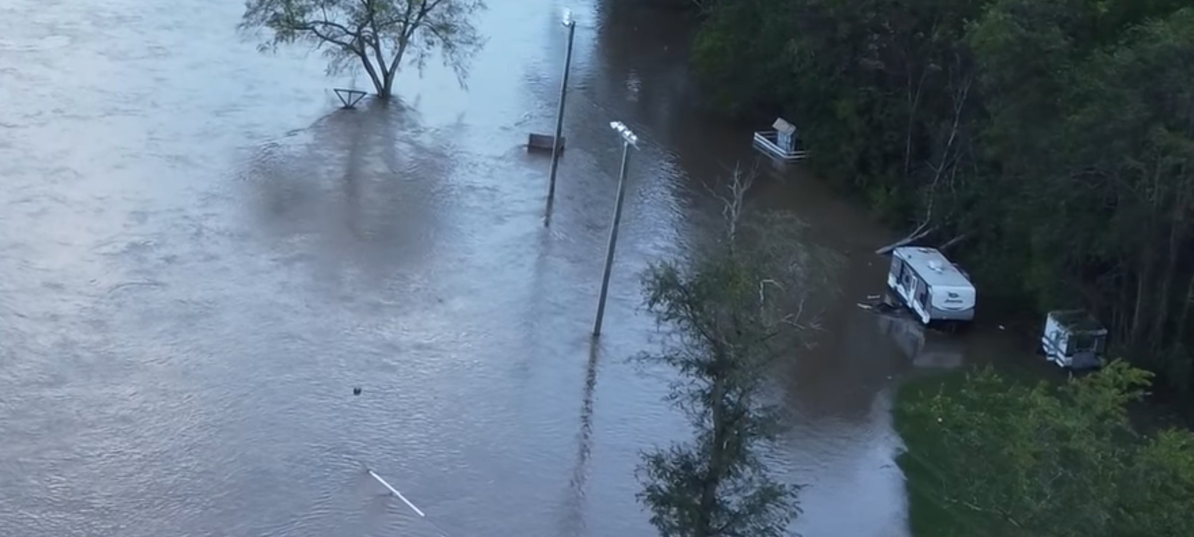 Video captured an RV camper coming over this dam, and apparently other RVs and boats went over, too. Note that it’s referred to as a “waterfall” in the caption (by the Weather Channel!) .