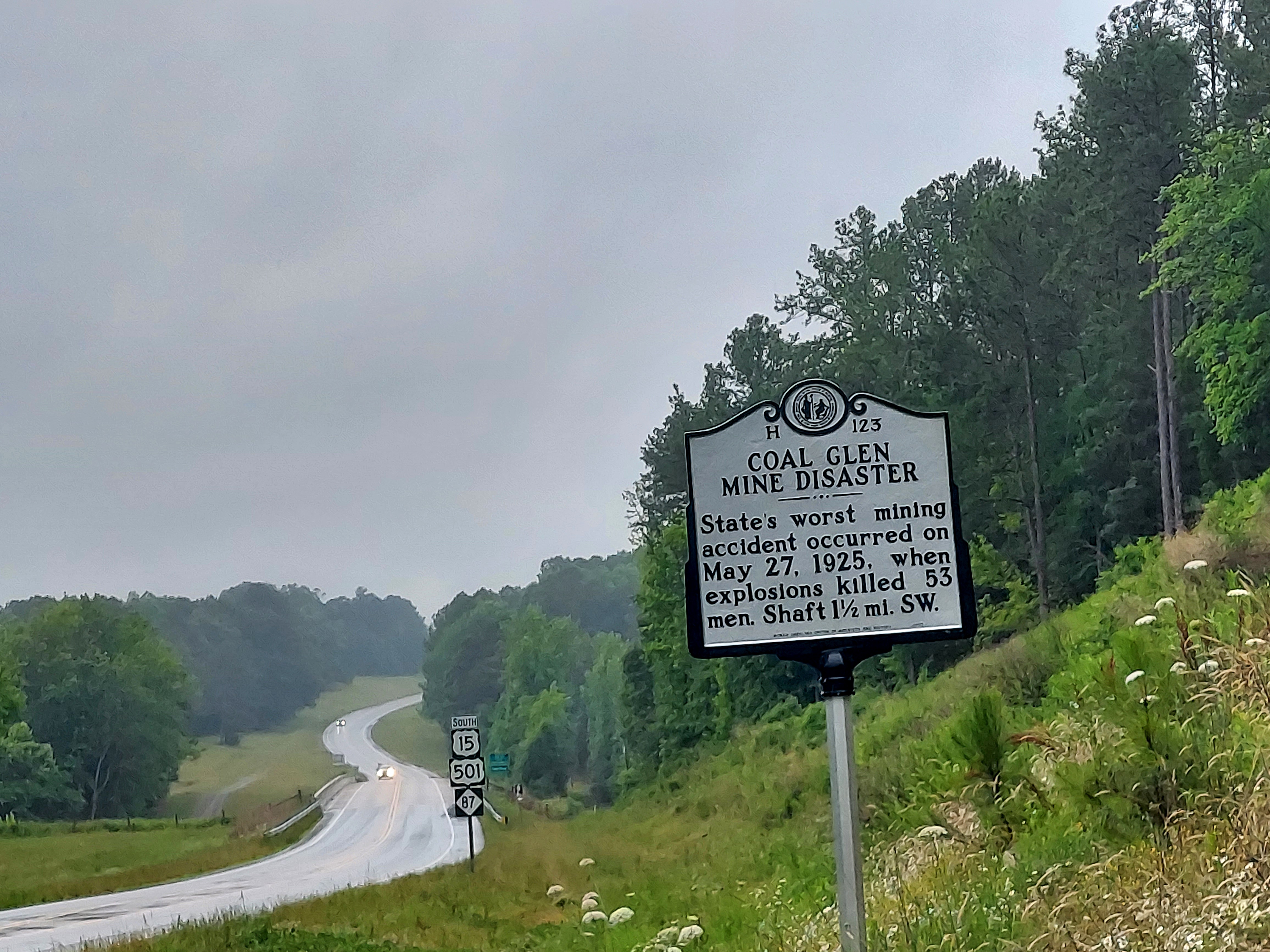 At 9:40 am, May 27, 1925, there was an explosion inside the Carolina Coal Mine, Farmville, Chatham County, North Carolina; as a result, 53 men lost their lives. This remains the deadliest industrial disaster in North Carolina history, but it is unknown to many in the state, but for a historical marker along US 15-501 near the Deep River.