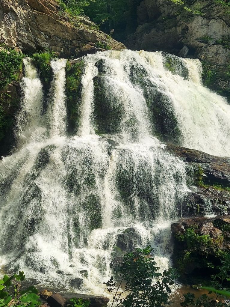 After some time at the Franklin shows amid steamy weather, the nearby waterfalls are a refreshing gift. Descent to the base of (Lower) Cullasaja Falls leads to loudly cascading sprays of misty bliss.