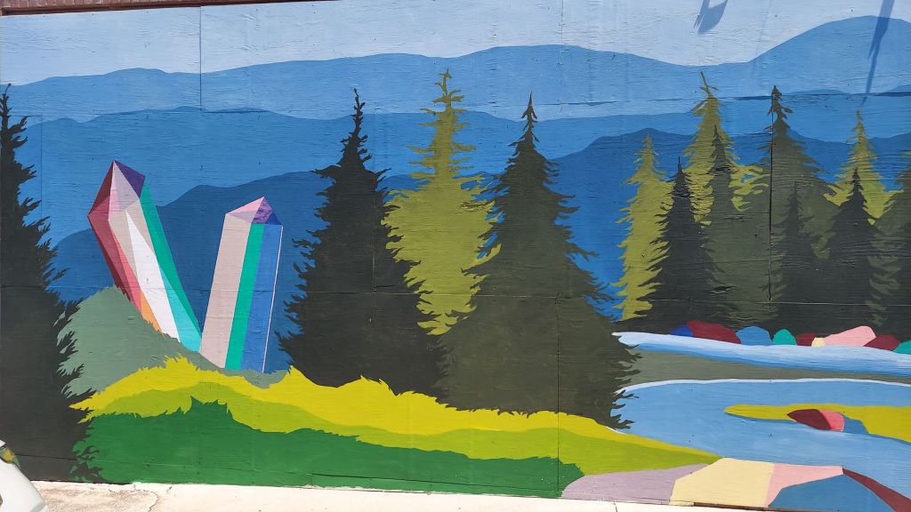 I didn’t take photos in downtown Spruce Pine, aside from this mural – it felt too touristy in a place where recovery is actively going on. But Mabel tells me to watch this drone video by NorthCove Visuals, which I’m sharing here.