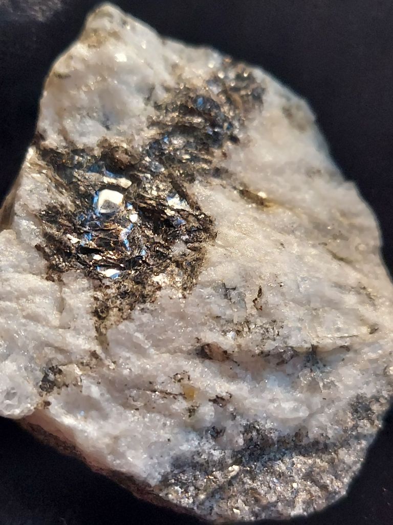 Mica, a group of sheet-formed silicate minerals, has a variety of industrial applications, from electrical insulation to makeup (“nature’s glitter”). Muscovite mica, typically light gray to brown, and biotite (black and shiny) are found in large amounts at the Ray and around this area. Rock hunters come here to look on the ground for green Beryl (“Aquamarine”) also in the host rock, and gem quality material has been found. But the path to the mine, unfortunately, is currently not accessible.