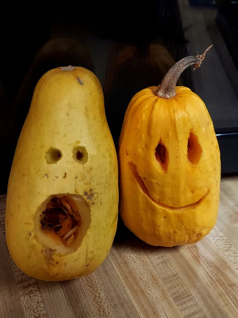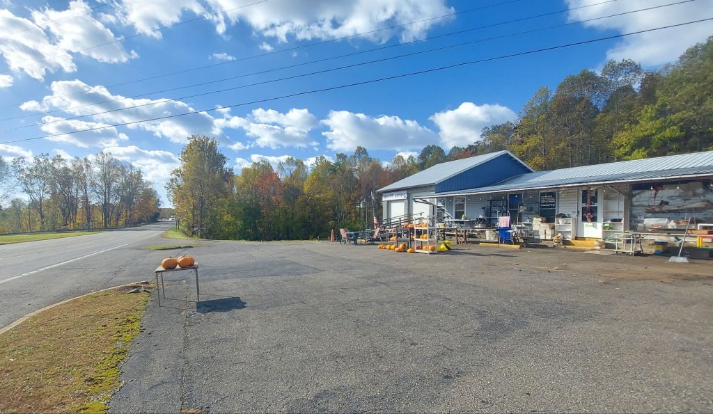 Further downhill entering Cana, I pass pumpkins on a table and shelves outside Blue Ridge Boutique, a place I’ve not seen. The lady inside is kind to offer some of the pumpkins and squash gourds today for Halloween. She says they were grown near Hillsville. I carve two of the yellow ones and bake them for dinner.