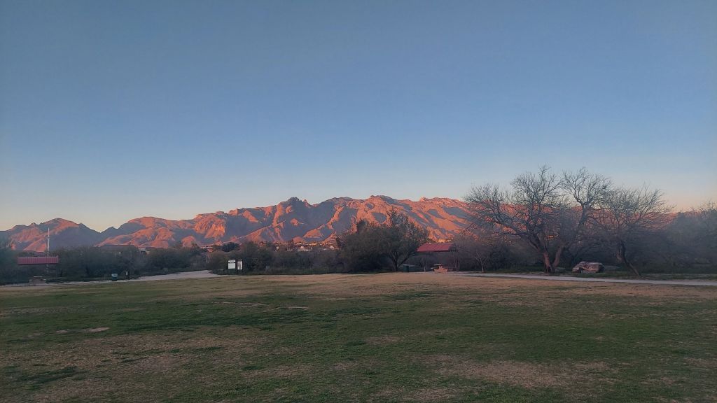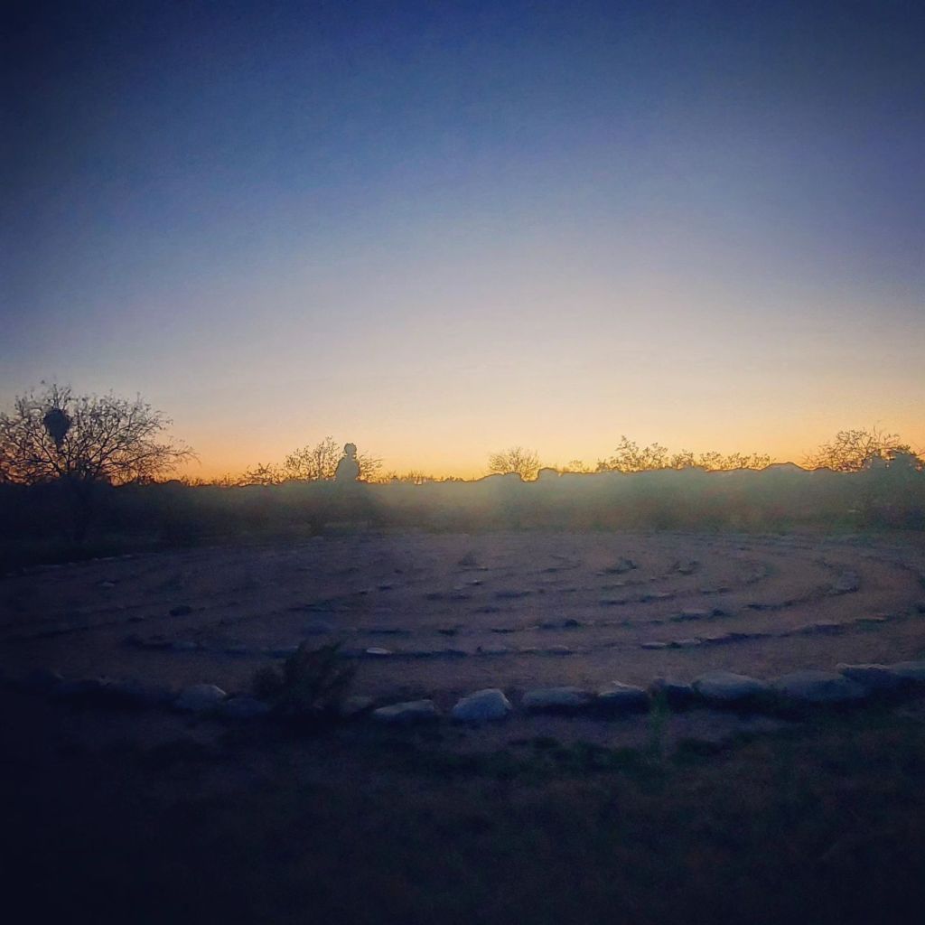 Sunset illuminates the Catalina mountains – a beautiful gift – and I walk back through the shrublands and the labyrinth. I’ve enjoyed this return today… but hopes for a fruitful trip fade as the days proceed.